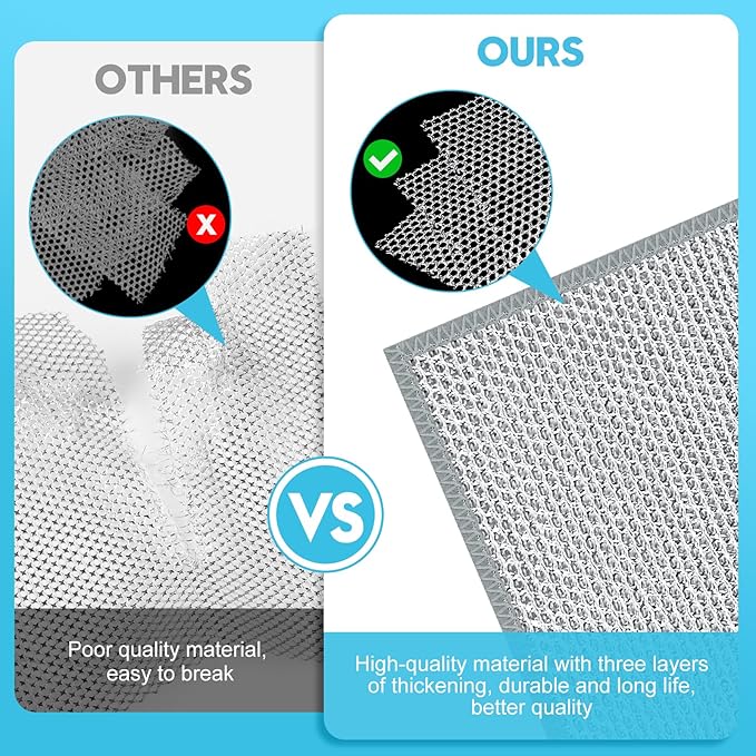 - 【Upgraded Three-Story Structure】Multipurpose non scratch wire dishcloths are made of advanced high-quality materials and precision stitching, and use advanced fiber materials Sew three layers of steel metal dish cloth, Not only does this provide a powerful cleaning power, but it also ensures that they don't scratch or damage unscratched surfaces. Satisfy your cleaning needs.