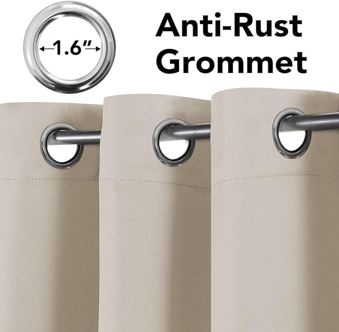 - NATURAL BLACKOUT: Products passed GLOBAL RECYCLED STANDARD certificate.These magic thermal insulated grommet curtain panels can blocks out 99% sun light and prevent 100% UV ray, authoritative lab test that the curtains are vinyl and PVC free, breathable and airy to your room