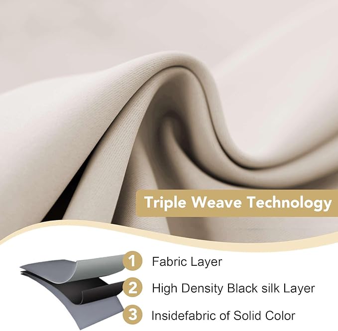 - MULTIPLE FUNCTIONS: These soft and durable curtains are made by innovative technology durable yarn, high performance on room darkening, thermal insulated, noise reducing, energy saving / efficiency and privacy protection