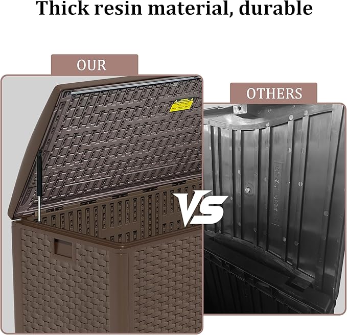 • Upgraded Outdoor Storage Box Waterproof. Blow-molded panels provide thicker, more durable construction for long-term outdoor use, suitable for storing patio cushions, gardening tools, and pool accessories.