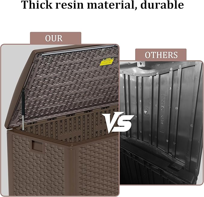 - Weatherproof Resin for Year-Round Use. Durable, waterproof resin, this deck box resists rain, sun, and UV exposure. Ideal for all-season use, it wonβt peel, rust, or warp like wooden or metal boxesβkeeping your items protected outdoors.