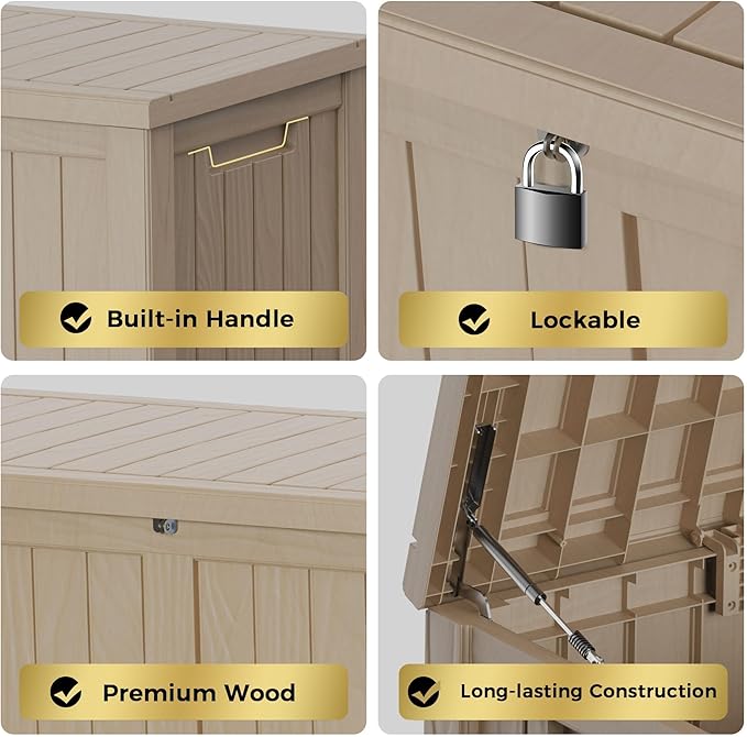 • Wide Range of Use: With a capacity of 150 gallons, this storage box can also be used as a patio seat, storage bench or footstool, whether it's family party supplies, camping equipment, gardening tools.