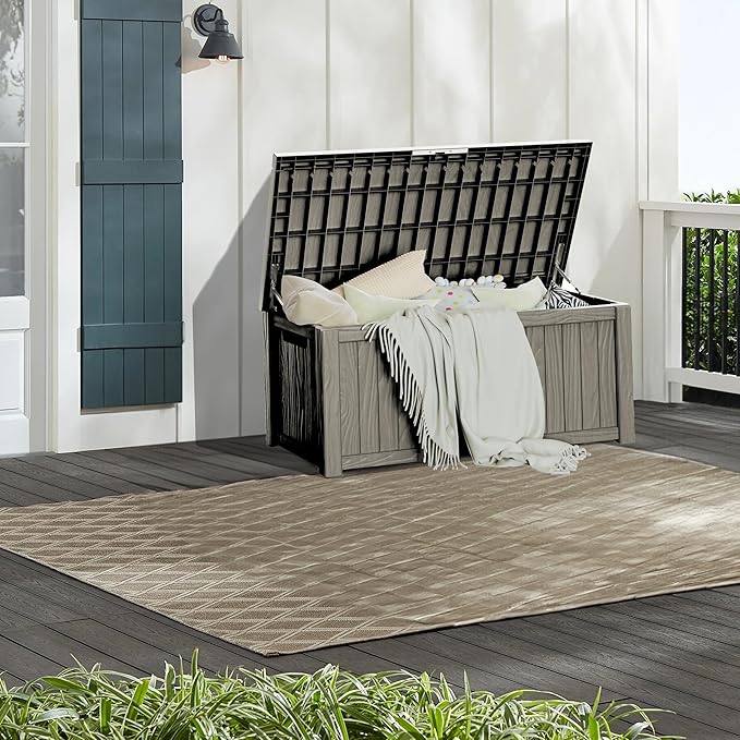 • Large Capacity: This 150-gallon deck box offers ample storage space for your outdoor accessories, and it has a 600-pound weight capacity and can be used as a separate patio seat or indoor table.
