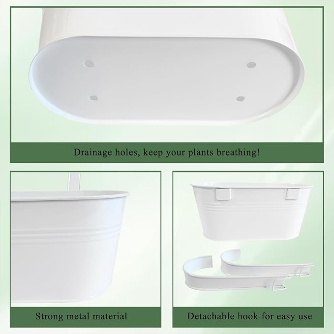 - Detachable Hook & Drainage Hole: The removable hook makes it easy to hang on deck railings, fences, or windows. The drainage hole prevents overwatering, keeping plants healthy. Great for patio planters, herb gardens, or succulentsβindoors or outdoors