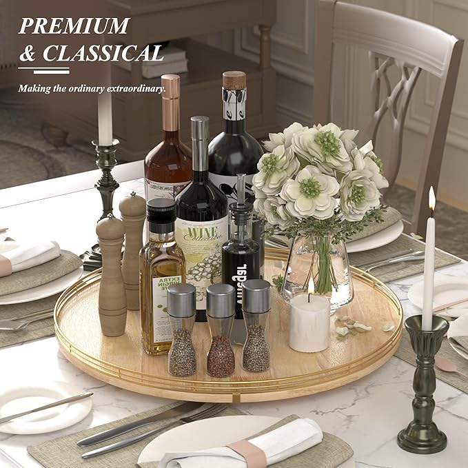 • [Extra-Large 21-Inch Design] Designed for spacious American homes, this oversized Lazy Susan provides ample surface area for family meals, parties, or organizing kitchen essentials.