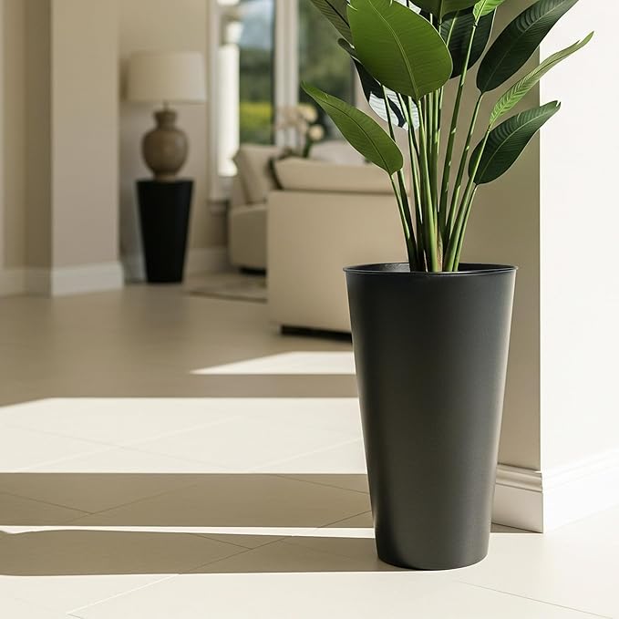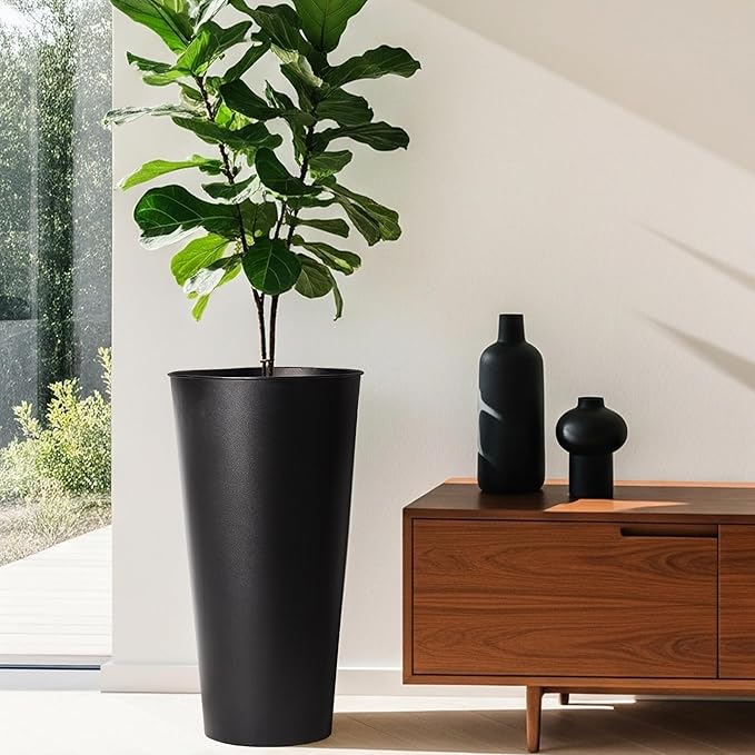 - Bold Tall Black Planter Statement: Matte black finish elevates modern or rustic spaces. Use as tall planters for outdoor plants on decks or sleek indoor planter boxes outdoor in lobbies.