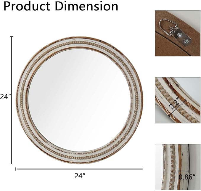 • Versatile 24-Inch Round Mirror - Perfect size for any room: use as a bathroom wall mirror, living room mirror, bedroom mirror, or entry mirror