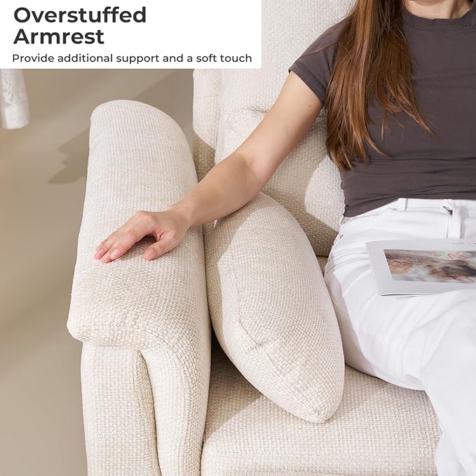 - Easy Assembly & Service: Each cushion of our sofa is 29.5 inches wide and 22 inches deep, providing ample seating space. You will receive packages that may not arrive at the same time, so please wait until you have received all the packages before starting the installation. We also provide free replacement for any faulty, damaged, or lost parts and offer a 2-year warranty. If you have any questions about purchasing, please contact us.